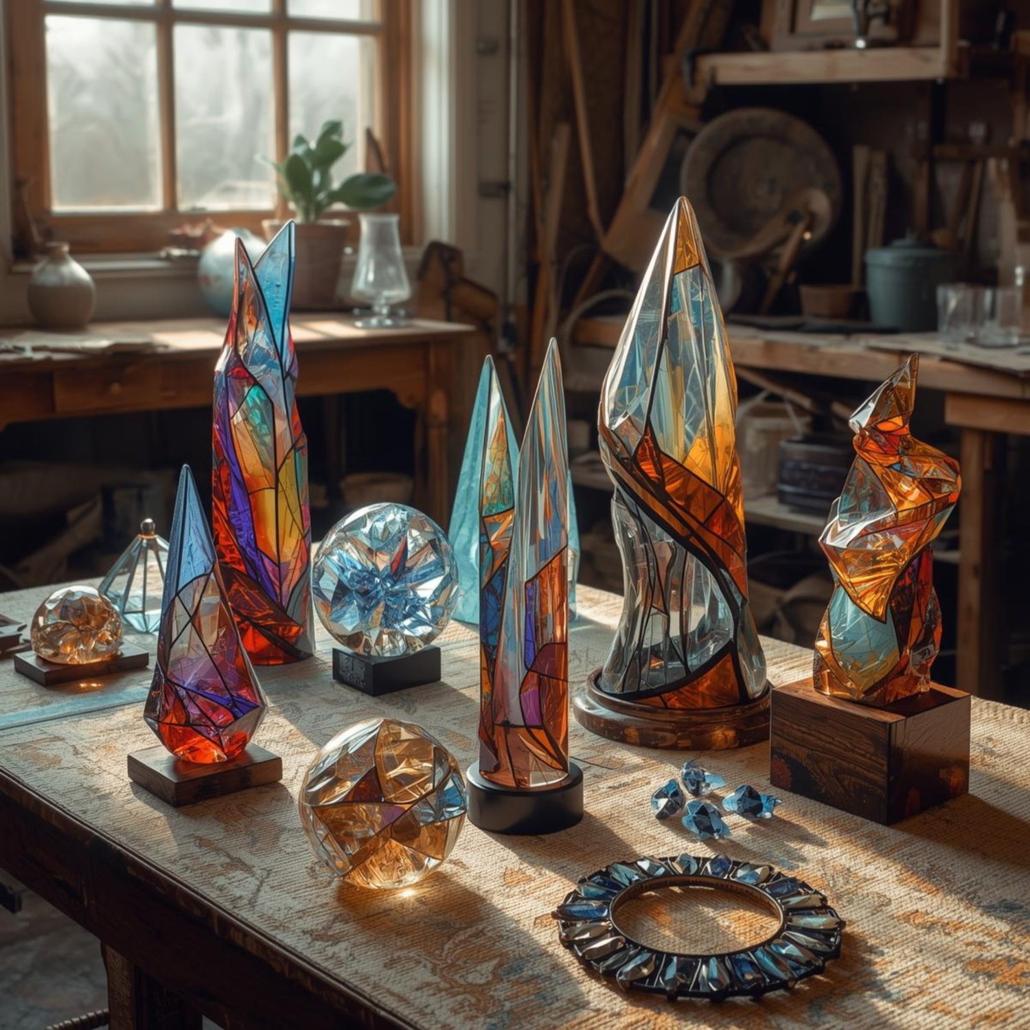 I design bespoke crystal jewellery and create sculptural and stained glass pieces for your gift or home needs. In addition, I carefully source hand crafted leather journals featuring handmade paper direct from India