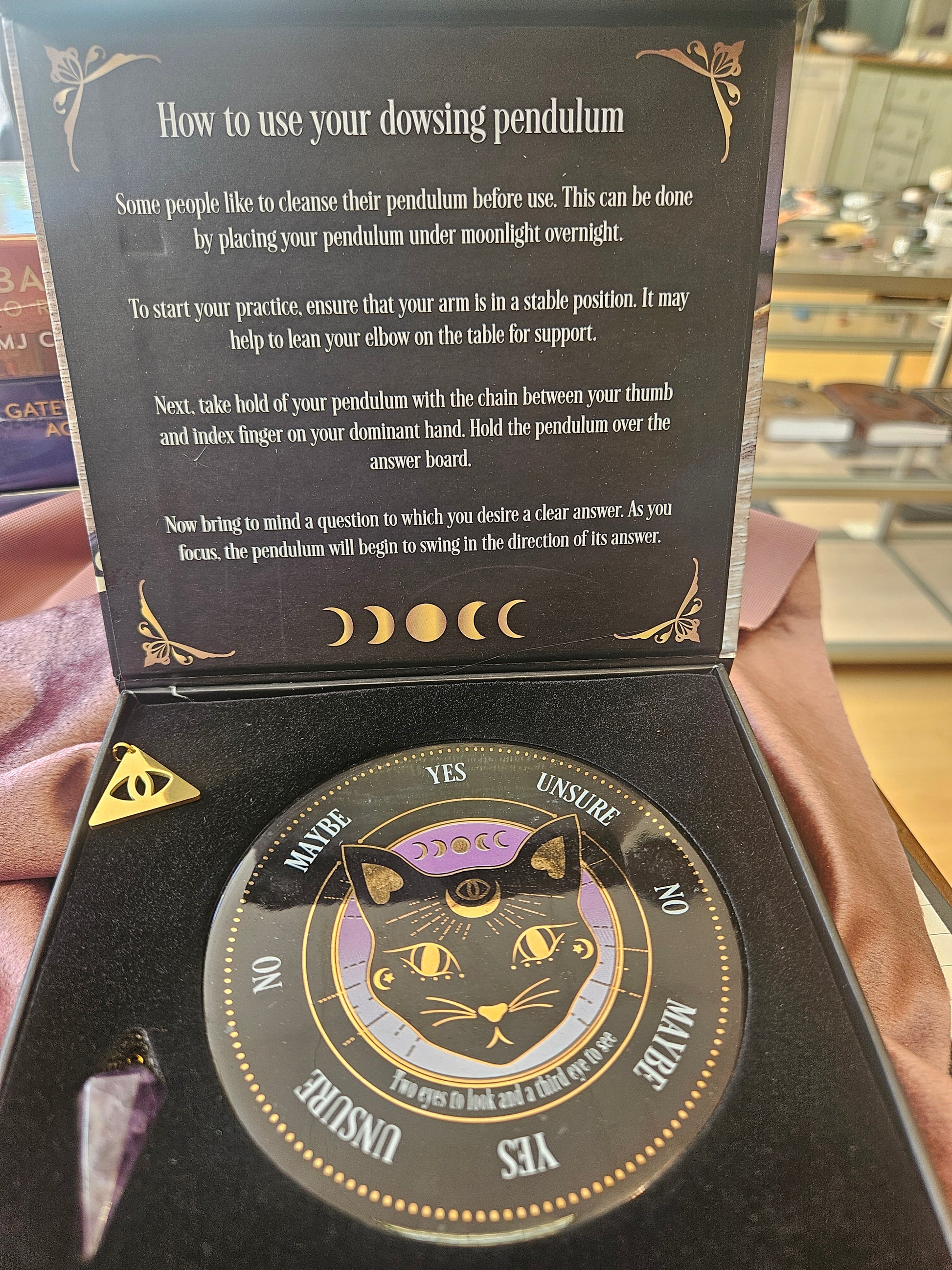 I comes with a ceramic plate and an Amethyst Pendulum in a beautiful presentation box 💜