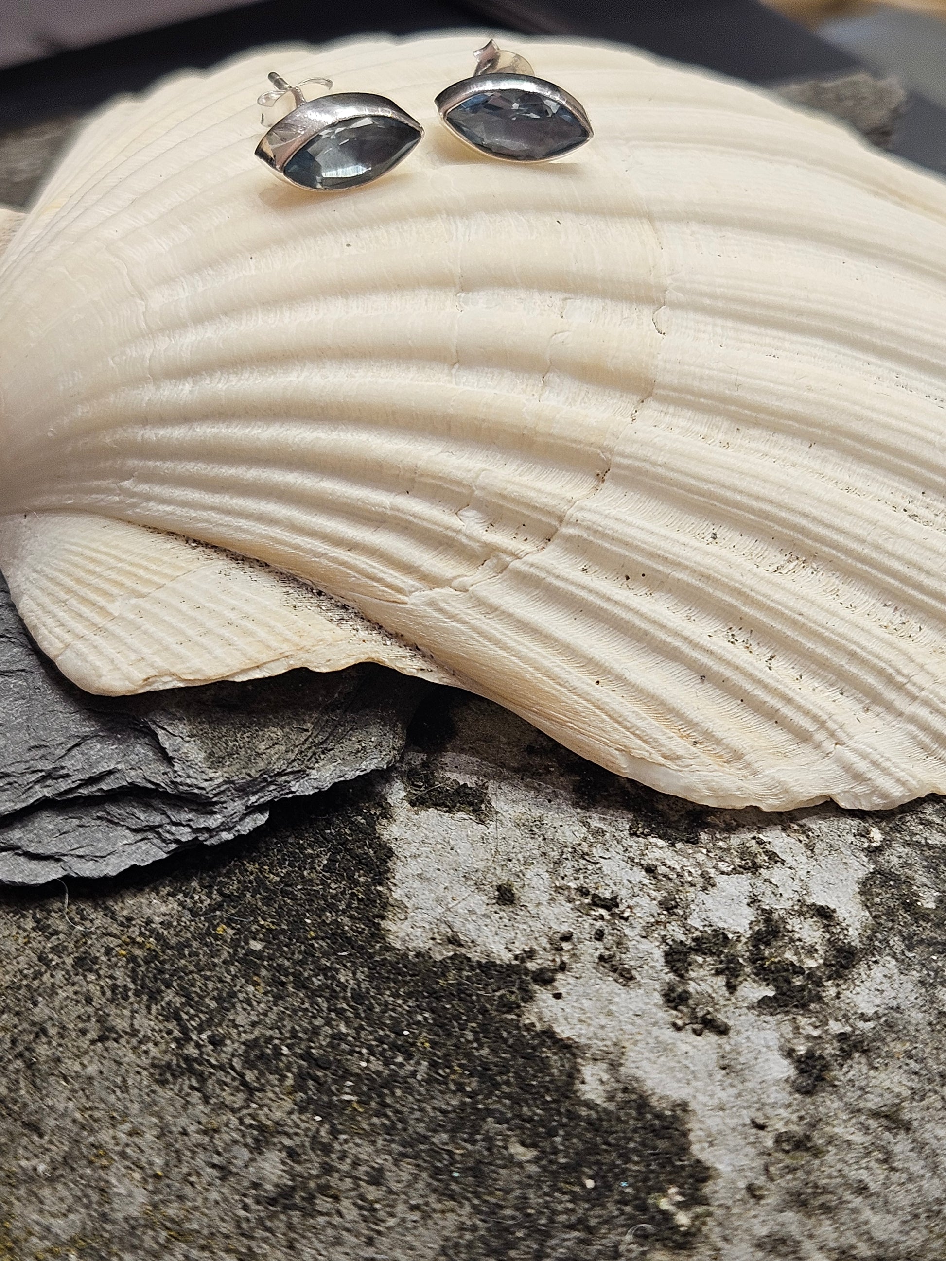 Simple marquise shaped stud earrings in a stunning Blue Topaz stone. Complete with a post and butterfly back.