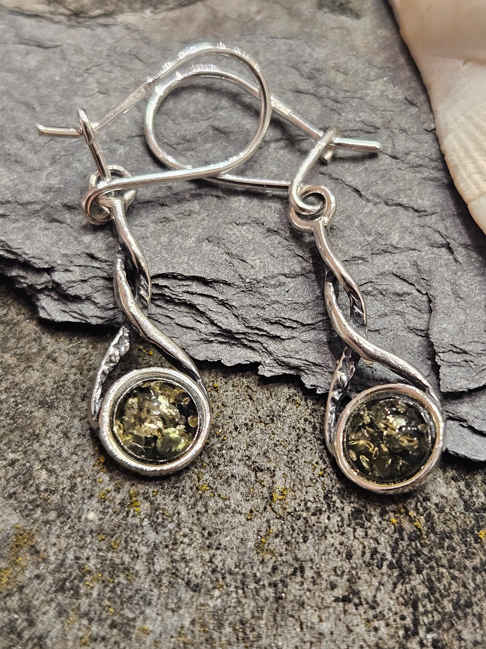 The rustic look of these twist drop earrings really give them a handmade feel, these Baltic cognac amber earrings contain a circle of amber encased in a sterling silver setting with a twist.