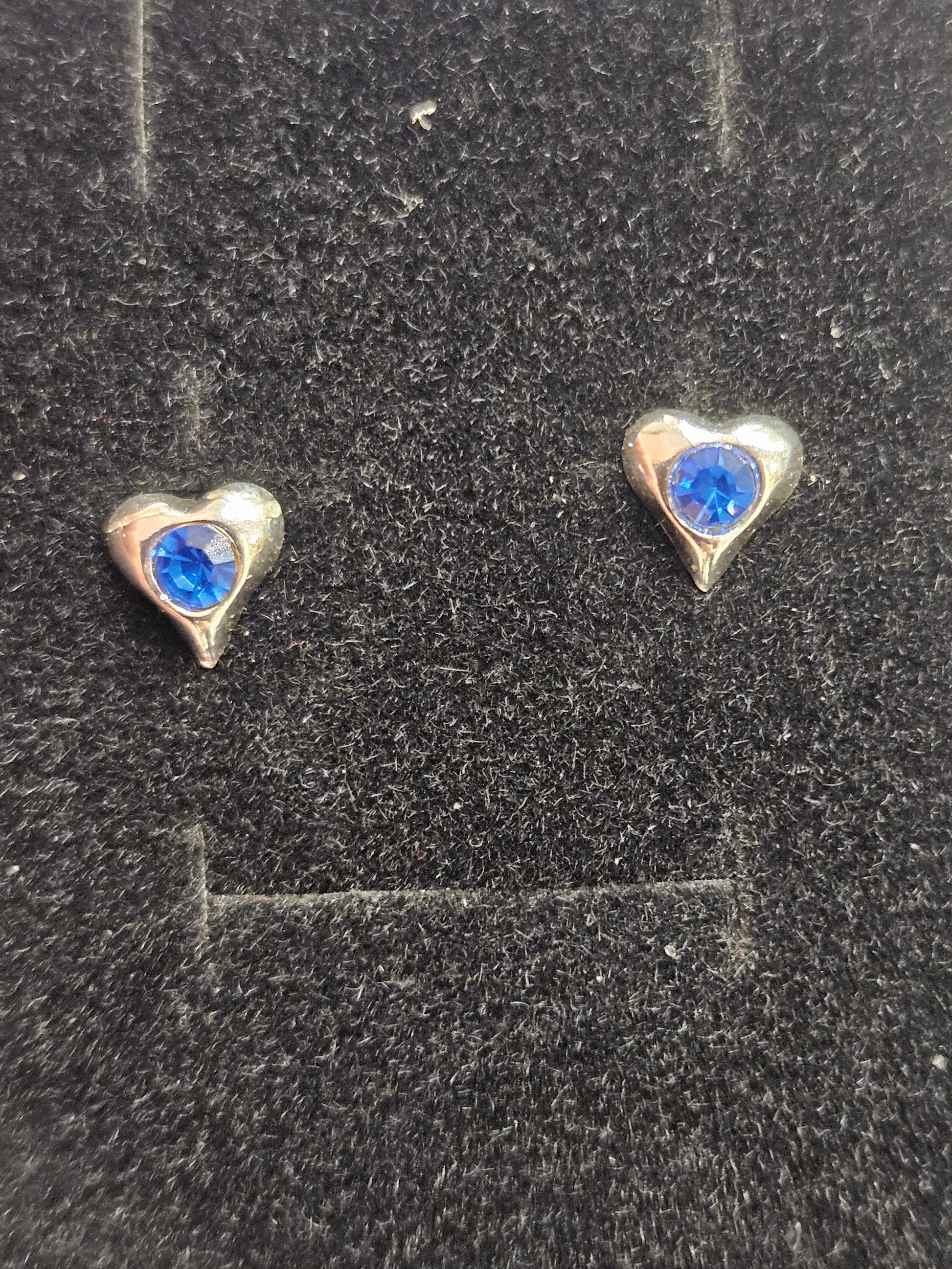 Pretty Sapphire Puff Heart Studs made with Sapphire CZ Crystals. These Lovely Silver Sapphire Puff Heart Studs have Pretty 4mm round Sapphire CZ Crystals set in a Heart Surround. They are 7mm