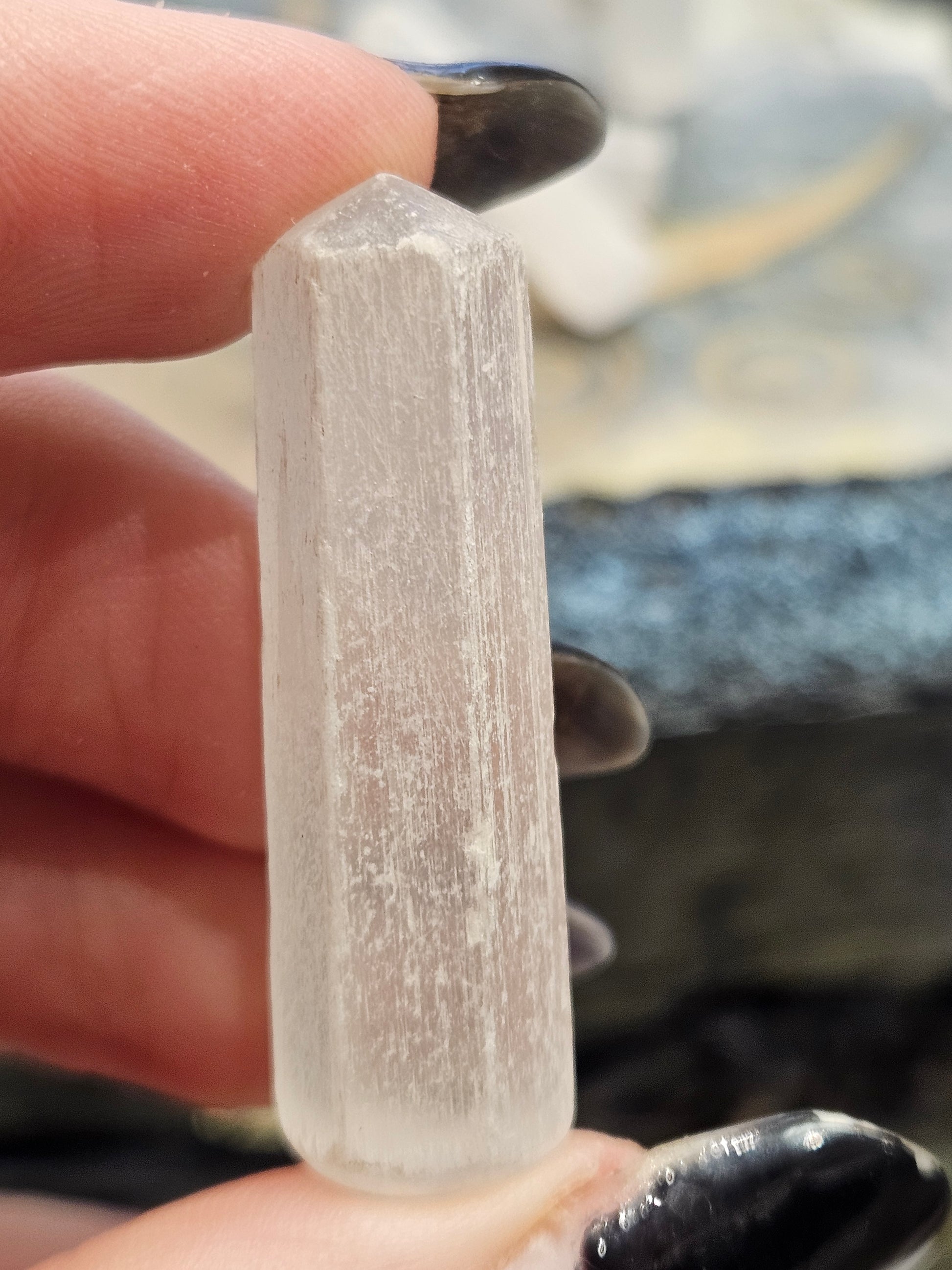 Selenite is perfect for charging your crystals, just pop this point near them to cleanse your other crystals but Selenite has beautiful properties all of its own š