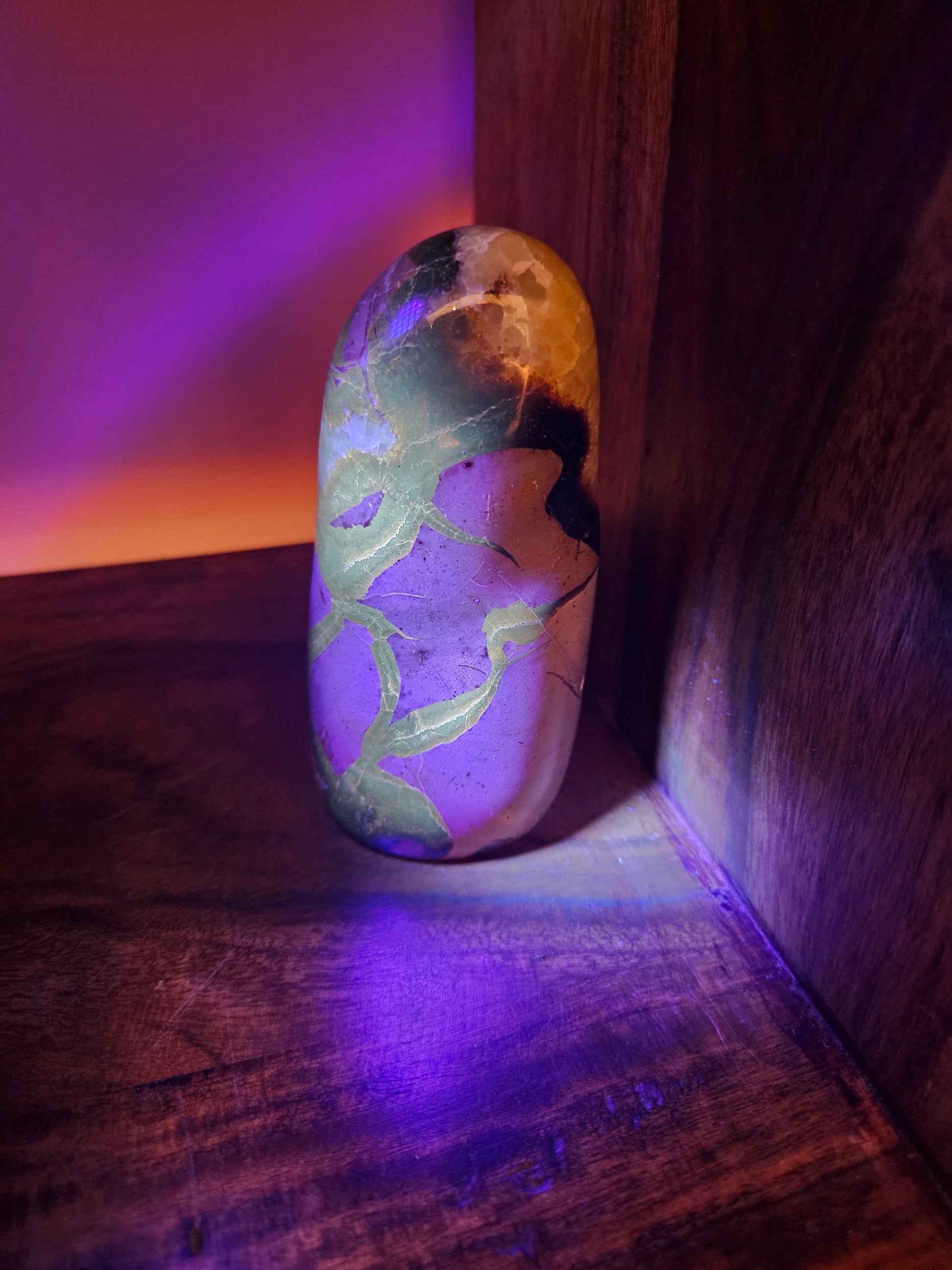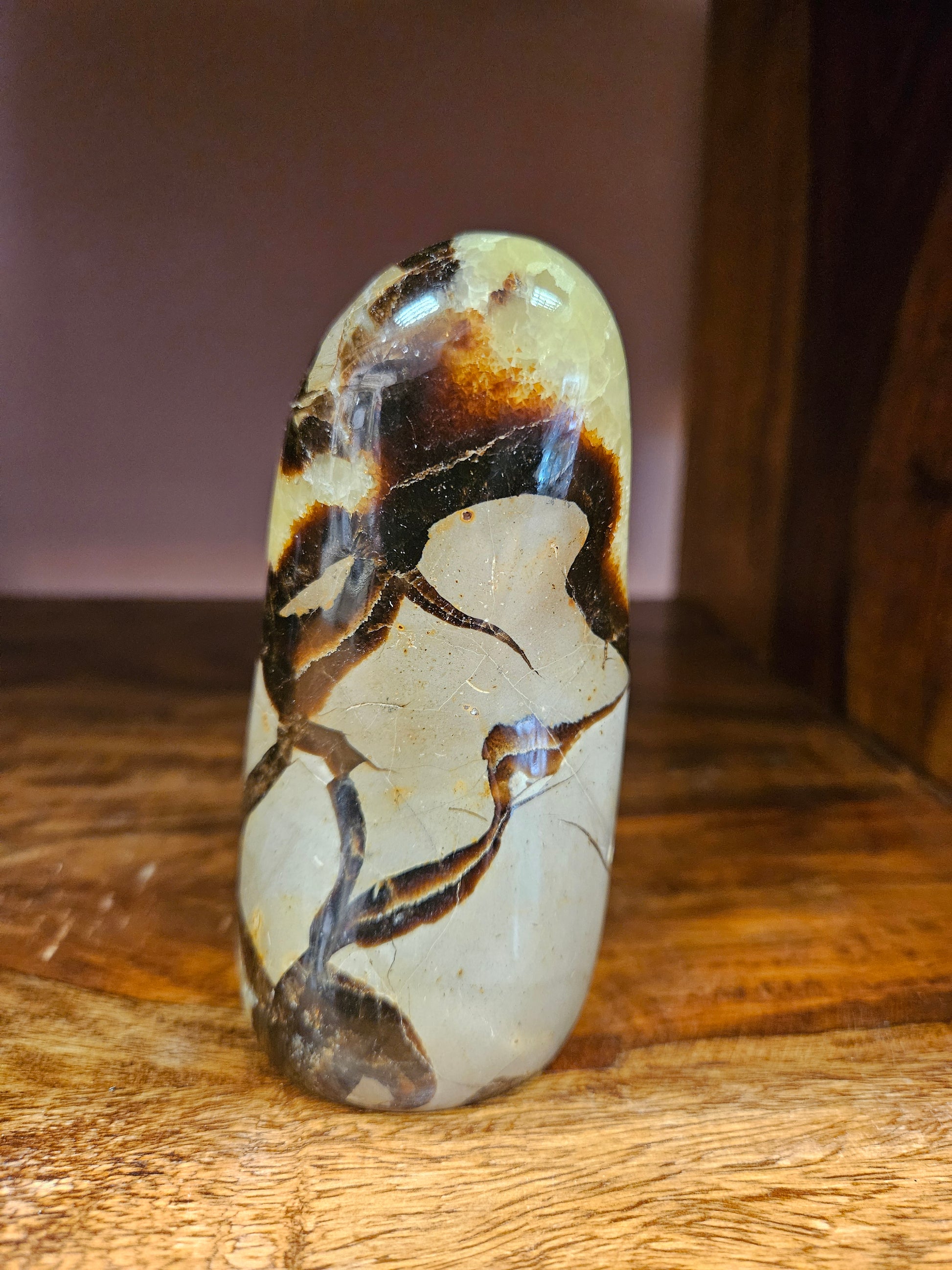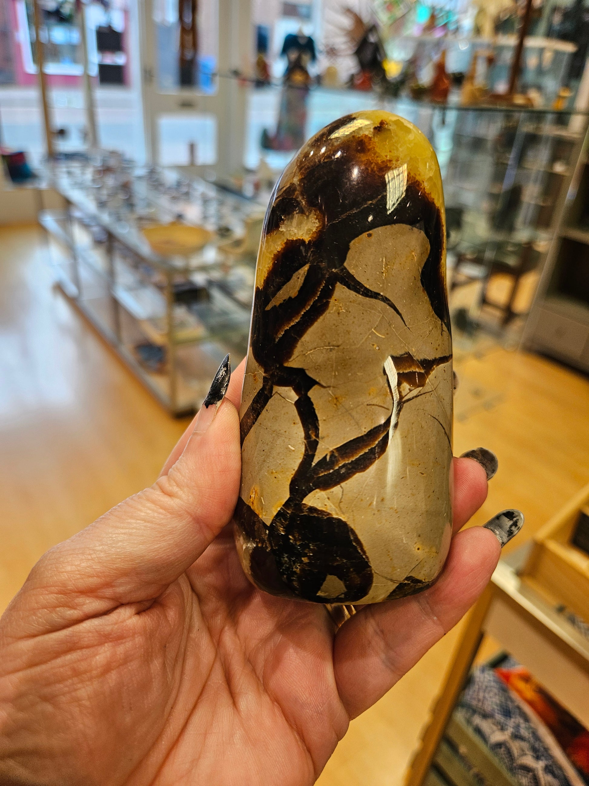 Septarian is also known as the Dragons Stone. Septarian is a beautifully grounding crystal that brings protection. It is said to attract prosperity and luck unto your life 💜